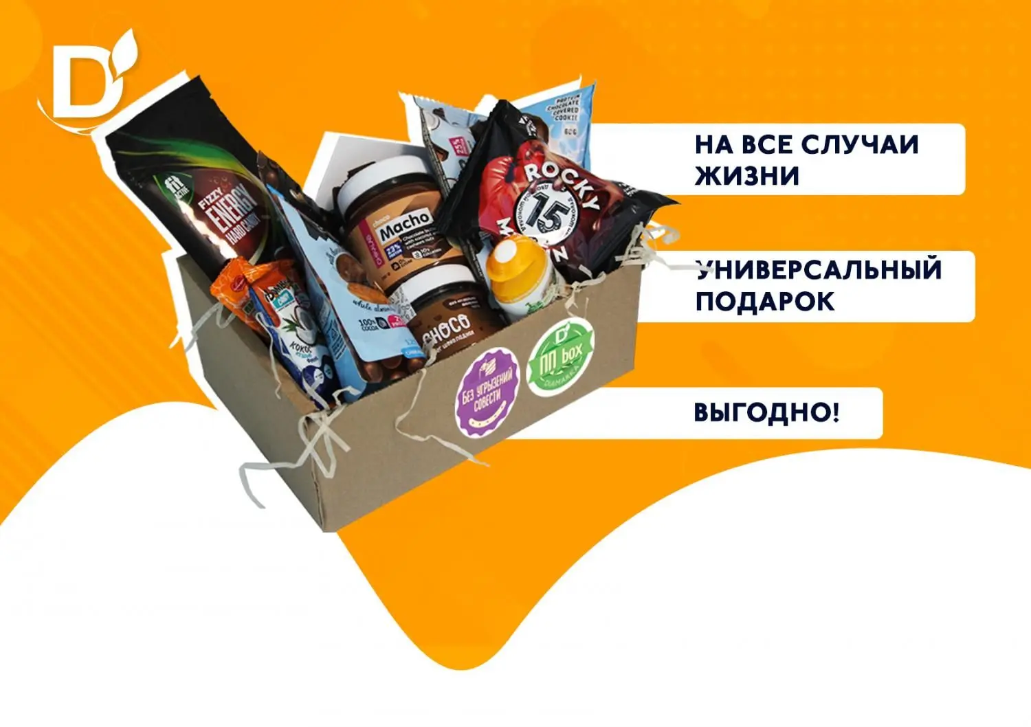 • мини-бокс с пп-продуктами. Внутри вы найдете десерты, шоколадную пасту, конфеты, батончики, печеньки и другие вкусняшки. Само собой, все с правильным составом. Всего: 12 вкусняшек.