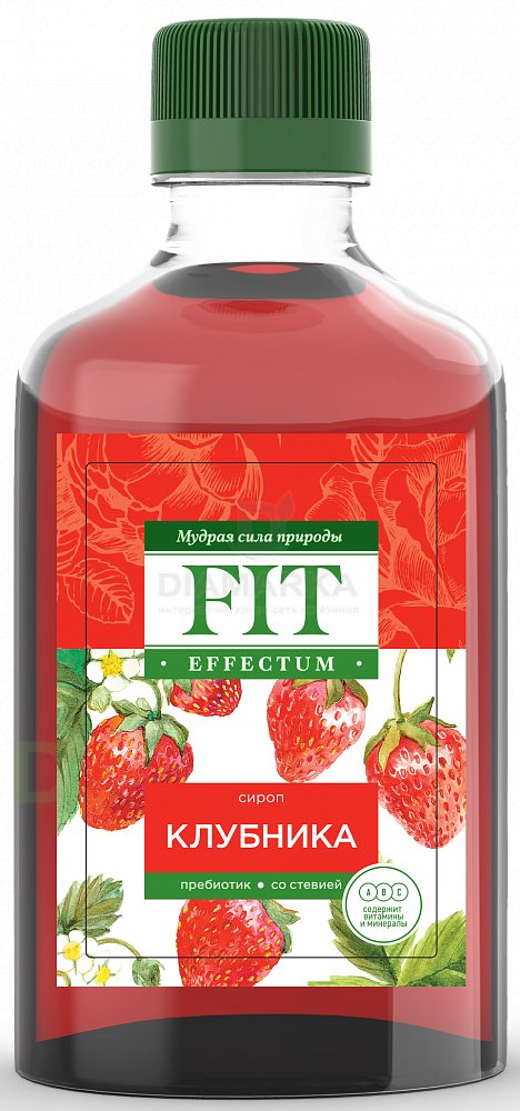 Клубничный сироп ФитЭффектум без сахара, обогащен пребиотиком.