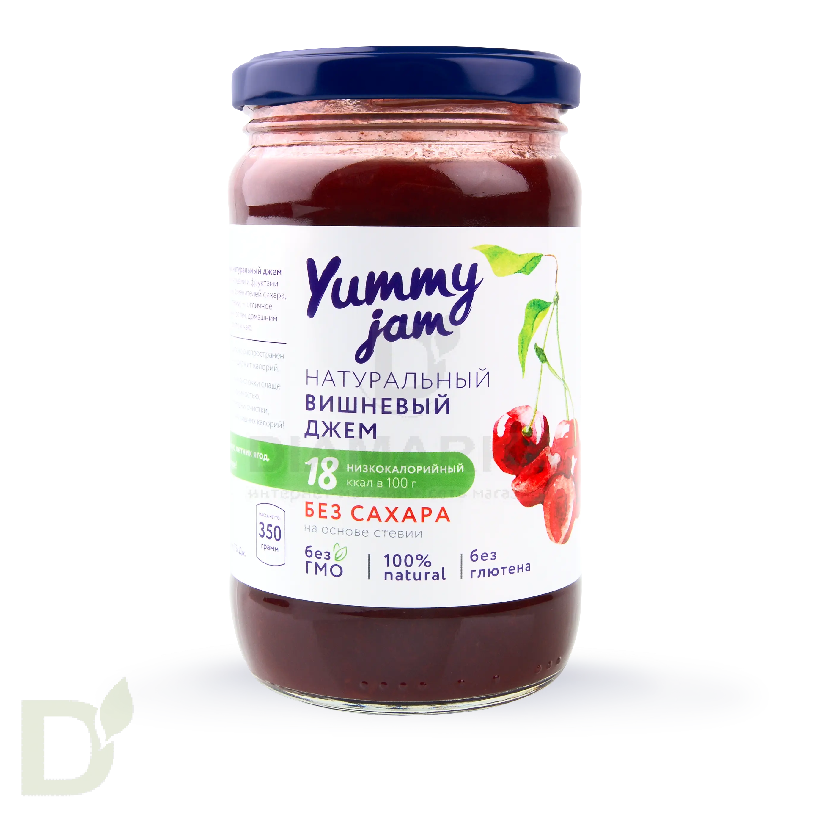 <h3>Ищите вкусный джем без сахара и лишних калорий? Значит вам сюда</h3> Джемы Yammy jam - это натуральные низкокалорийные джемы БЕЗ сахара! Подойдут тем, кто следит за фигурой, диабетикам, спортсменам и просто неравнодушным к сладенькому;) <h3>Рекомендуем попробовать джемы Yammy jam, потому что</h3> <ul> <li>в них не содержится сахара</li> <li> в качестве подсластителя используются натуральные стевия и эритрит</li> <li> джемы обладают умеренно сладким вкусом натуральных ягод и фруктов</li> <li> калорийность джема минимальна - всего 18 ккал!</li> </ul> <br> <span style="color: #383838; font-size: 1.6em; font-weight: bold;">Куда добавить джем</span><br> Каша, йогурты, творог, тосты, печенья, домашняя выпечка и куча других блюд заиграют новыми красками, если добавить в них пару ложек низкоуглеводного джема! <br> <h3>Состав вишневого низкокалорийного джема</h3> вода, вишня, подсластитель натуральный - эритрит, загустители натуральные - пектин, КМЦ (клетчатка), лимонная кислота, подсластитель натуральный - экстракт стевии, сорбиновая кислота.<br> <br> <b>БЖУ на 100 грамм: белки - 0; жиры - 0; углеводы - 19 г, в том числе: эритрит - 14 г, пищевые волокна - 1 г. 18 ккал/75 кДж.</b>