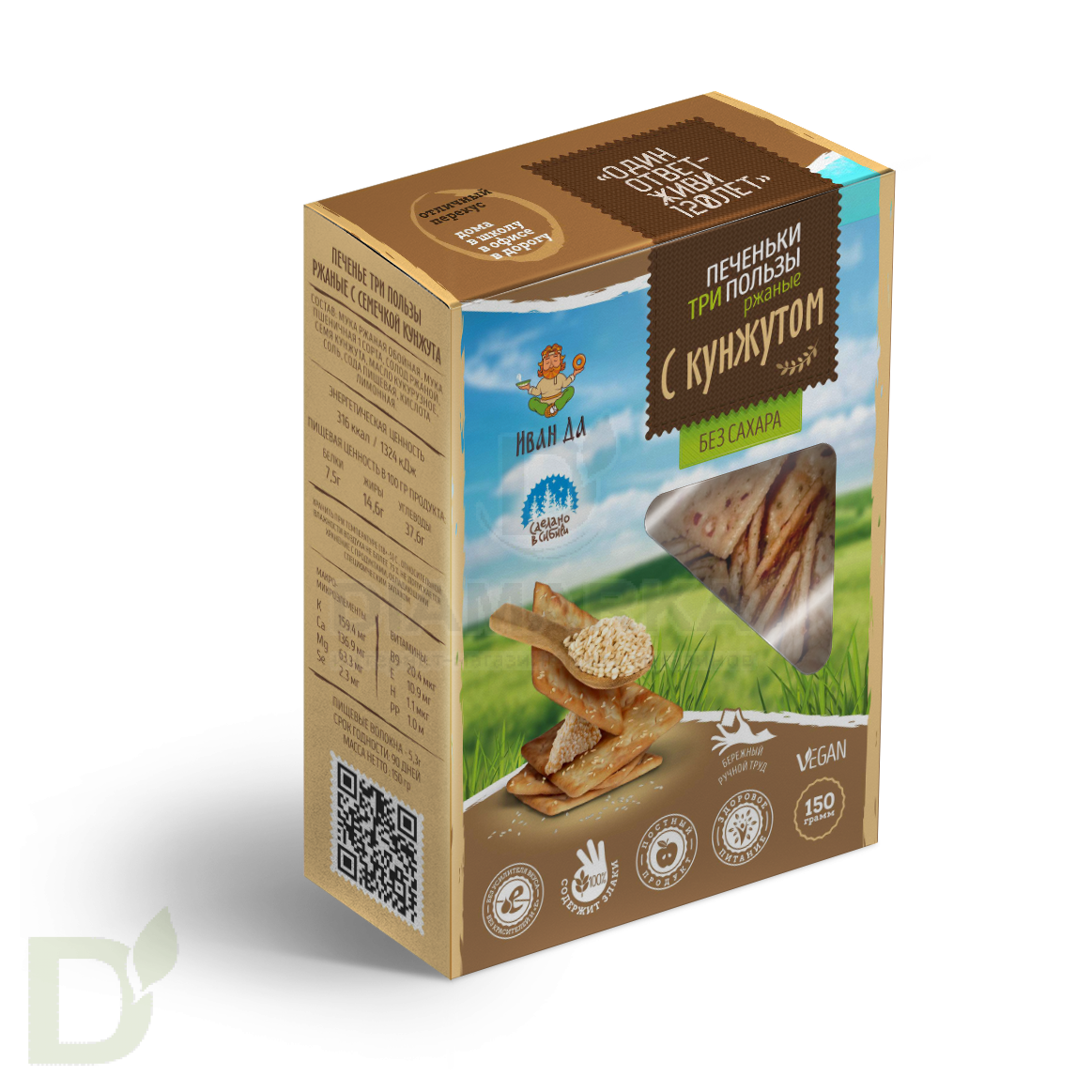 Продукты для правильного и здорового питания - это один из главных принципов компании "Иван-ДА". Они производят оригинальные и уникальные продукты с использованием только натуральных ингредиентов. В составе печенья вы не найдете никаких синтетических компонентов, все изготовлено с любовью и заботой о вашем здоровье.